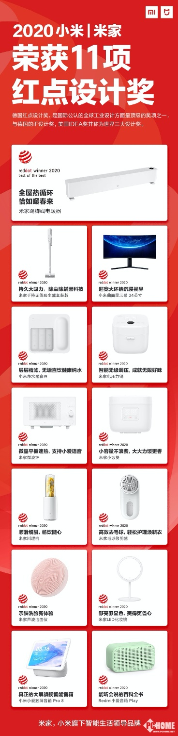 根据德国红点设计组委会公布的2020年德国红点奖最终显示名单,小米集团旗米家产品荣获11项红点设计奖,其中米家踢脚线电暖气荣获红点设计最高奖项Best of the best,这也是从2017年开始,米家电动滑板车、米家智能后视镜、米家全景相机等产品后小米再次获得德国红点设计最高奖项。