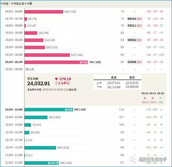 街货分布方面,截至上周五,恒指牛证密集分布在收回价22200点至22600点区间,相当约941张期指合约,而熊证则集中分布在收回价26100点至26600点区间,相当约1826张期指合约。