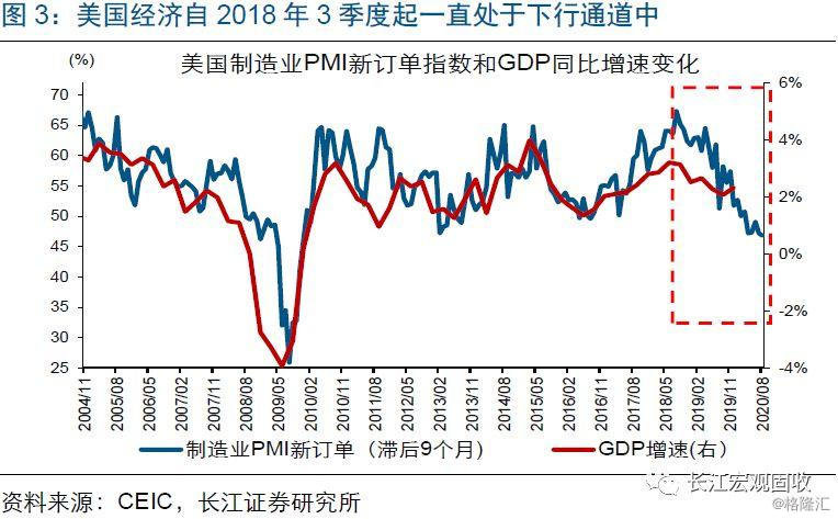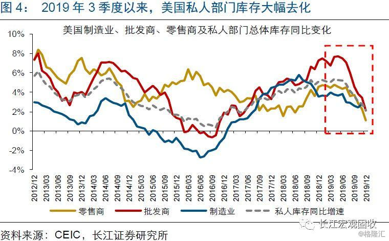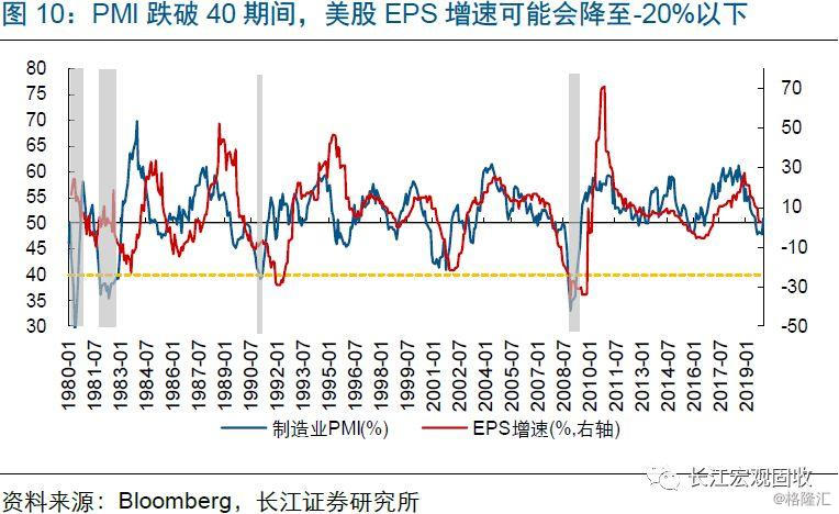 作为全球经济火车头,美国经济自2018年3季度起一直处于下行通道中,私人投资、私人消费等内需指标持续回落,私人部门库存更是进入大幅去化阶段。新冠疫情的扩散,可能进一步拖累美国经济。倘若疫情无法得到有效控制,美国服务业将直接遭受冲击,制造业也可能因为疫情出现停工潮。参考历史情况,美国可能出现单季度企业盈利增速降至-20%的极端情形。
