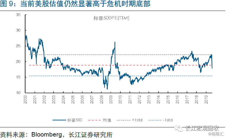 海外市场风险尚未完全结束。除了疫情对于经济与盈利的潜在冲击之外,高杠杆下的美国企业信用危机可能是更深层次的风险。同时,历史经验表明,危机时刻货币政策对冲影响通常极为有限,难以消除风险因素的影响。当前美股估值仍显著高于历史危机时刻底部位置。未来若疫情在海外继续加速蔓延,海外市场仍然存在较大尾部风险。