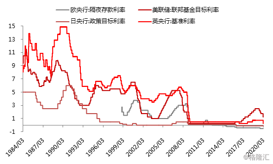 如今,日本央行的利率水平已经降至-0.1%,欧央行的隔夜存款利率已经降至-0.4%,英央行的基准利率最近也下调至0.25%,三大经济体的利率水平均处在负利率或接近零的水平。前不久,美联储把目标利率调降至1%-1.25%,3月16日又突然大幅降息至0-0.25%,并承诺7000亿美元的资产购买,未来负利率可期。