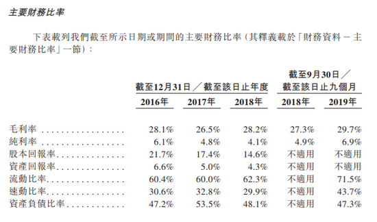 公司的毛利率于往绩记录期保持相对稳定,于2016年、2017年、2018年及截至2019年9月30日止九个月分别为28.1%、26.5%、28.2%及29.7%。