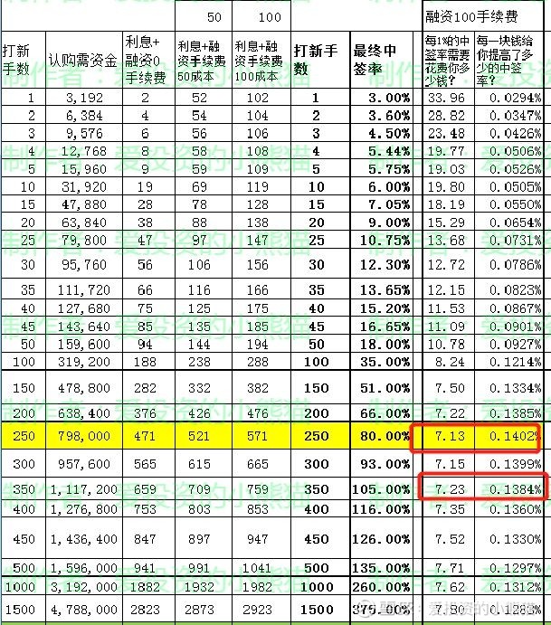 这里每一手认购的成本都算了进去,这里成本包括融资的利息以及融资认购手续费,就可以统计出来,你的资金使用效率了吧?这张图大家要保存和收藏了,虽然不是每一个股票都是适合于的图形,但这也相当于是一个类比,以后的每一个新股,小熊猫也都会来给大家分析这个问题,也希望大家多多关注并且在文章下面提问和探讨。
