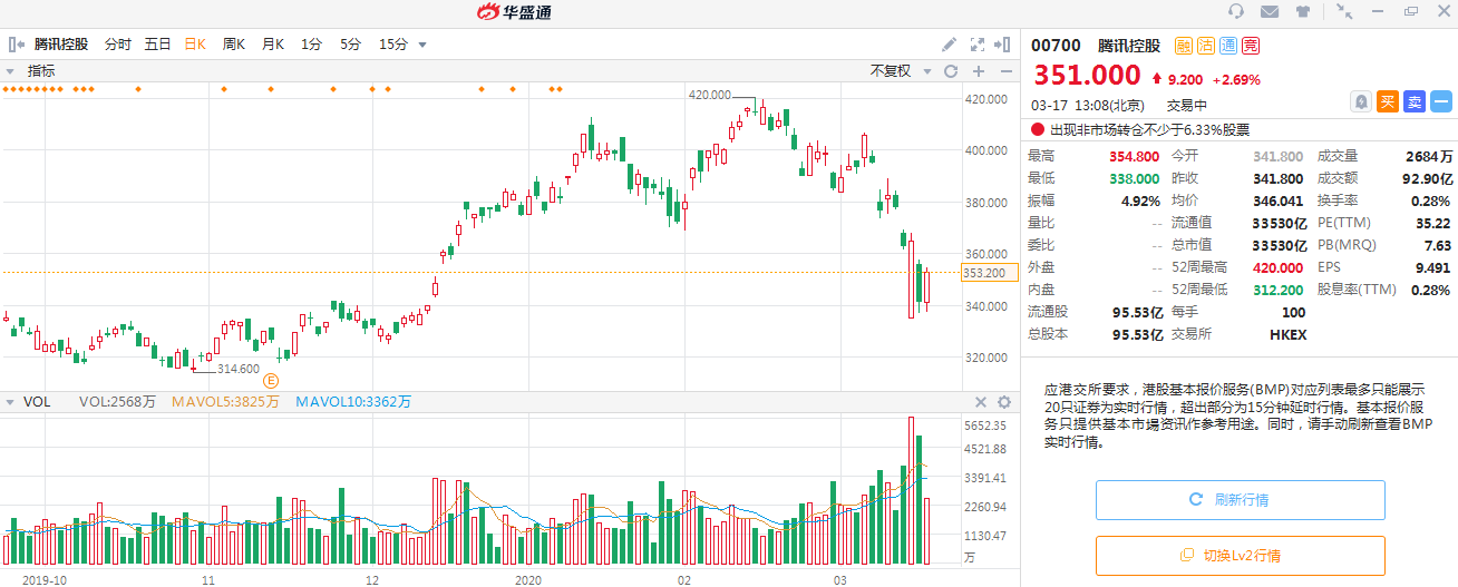 但由于近期受疫情蔓延影响,全球金融市场动荡加剧,腾讯股价也持续下跌至350元左右的低位。究竟这家老牌的互联网龙头公司能交出怎样的财报成绩,当下又是否是好的投资机会呢?
