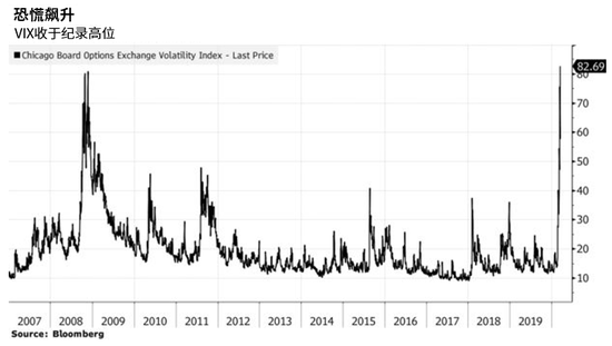 BMO Capital Markets的美国利率策略师Jon Hil表示:“VIX有史以来第三次收于80以上,十分令人担忧。其他两次发生在2008年第四季度全球金融危机期间。现在很明显,我们正处于2020年COVID-19金融危机的深渊之中,还会发生很多事情,而且几乎无法预测。不过,不断加大财政投入、加强商业票据融资工具,这些似乎是近期会推出的政策举措。”