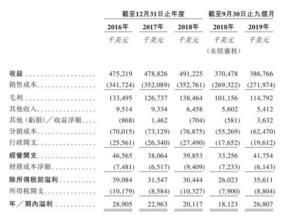 2016年至2018年,上好佳的营收分别为4.75亿、4.79亿和4.91亿美元;2019年前三季度,上好佳的收入从2018年同期的3.70亿增加4.4%至3.87亿美元,其中在中国的收入占比为66.7%,在越南的占比则为33.3%。