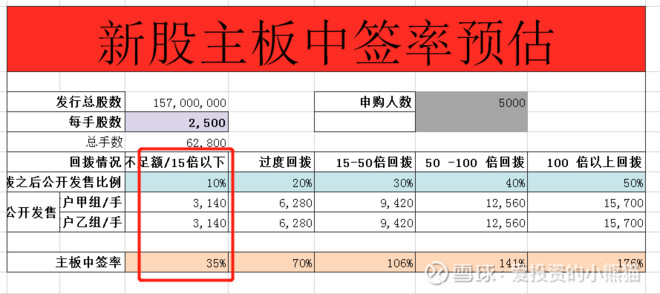 超额倍数在15倍以下或者未足额,一手中签率预计在35%左右;