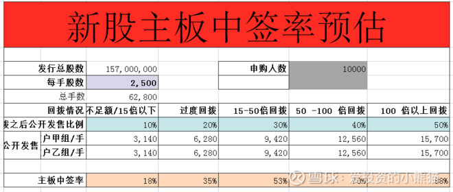 超额倍数在15-50倍,回拨至30%,一手中签率预计在100%左右;