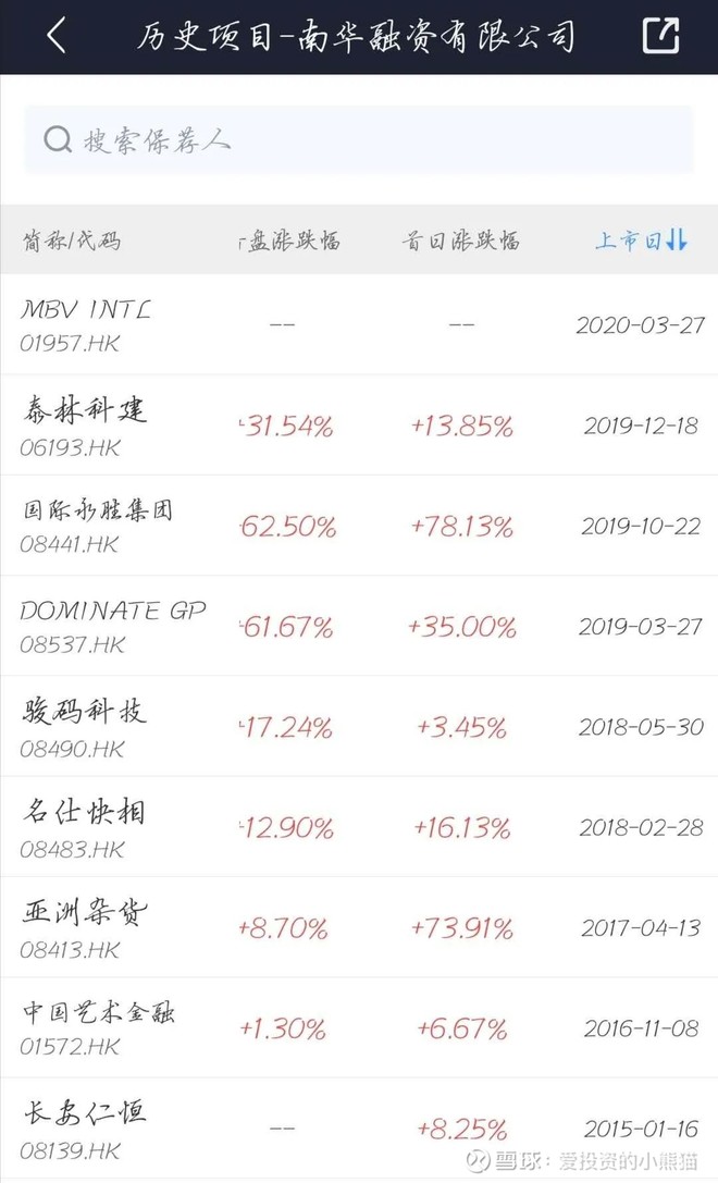我们再来看一看本股票这次的保荐人,南华融资有限公司