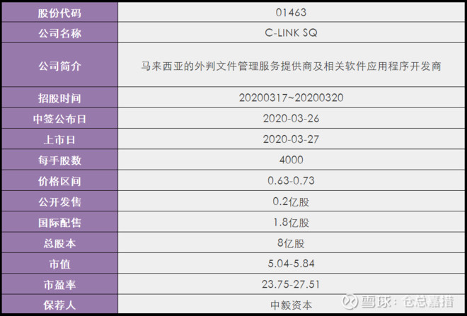 4、保荐人&稳定价格经办人:保荐人中毅资本,稳价人晋立峰。以下是中毅资本作为保荐人的历史项目,仅有一个,参考意义不是很大,大家看看就行。