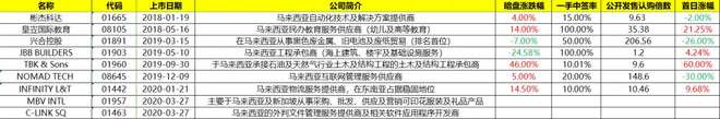 换个维度看一下,以下是2018年以来上市的马来西亚新股的历史表现,4涨3跌。