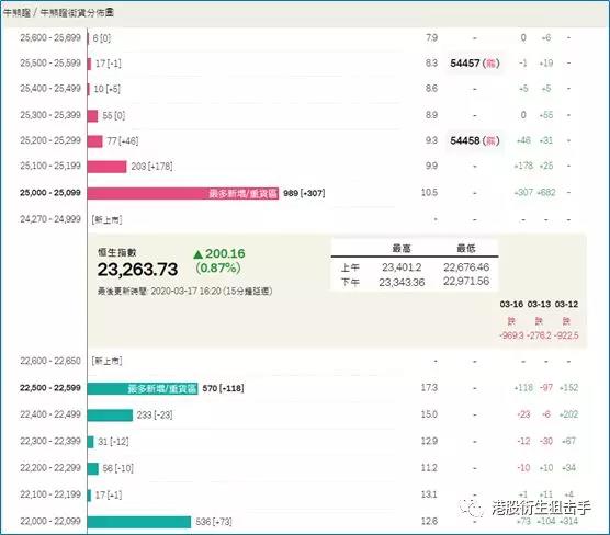 街货分布方面,截至周二,恒指牛证密集分布在收回价22000点至22600点区间,相当约1443张期指合约,而熊证则集中分布在收回价25000点至25400点区间,相当约1324张期指合约。