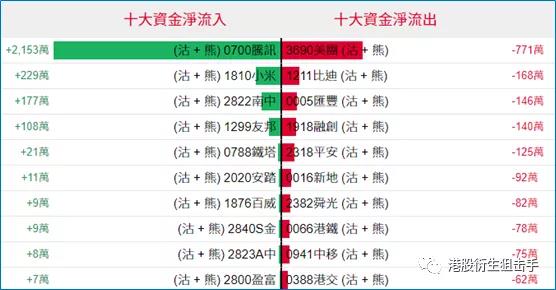 淡仓(认沽证及熊证)方面,有2153万、229万港元资金分别净流入腾讯、小米部署空单,而有少量资金净流出美团、比亚迪股份套现。