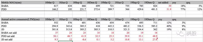 综上,拼多多确实在产品体验上实现了相对于竞争对手较明显的差异化,而非简单粗暴寄希望于低价策略,抢短周期内用户和GMV份额。更简单更亲近消费者的产品设计,提升了用户留存和复购的概率,从而放大补贴的长期效果,拼多多用户净增长值长期高于对手,体现了这种“简单的力量“对用户的吸引力。如图,拼多多Q4平均MAU环比净增长5190万,超过阿里的3900万,拼多多活跃买家数净增加4890万,阿里和京东净增加值分别为1800万和2760万。