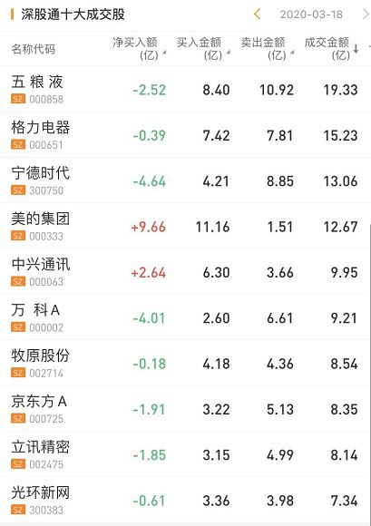深股通净买入美的集团9.66亿,净卖出宁德时代4.64亿、万科A4.01亿元。