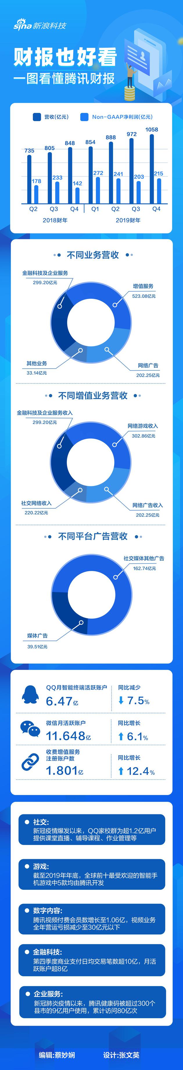 腾讯控股今日公布第四季度安和年度业绩。2019年第四季度收入为1058亿元人民币,市场预期为1029.24亿元,上年同期为848.96亿元。