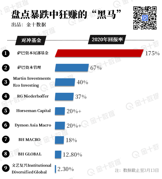 除Brevan Howard外,最近频频暴动的市场中,还有少数押注债券和波动率的对冲基金成功赚到钱,成功逆袭。以下数据截止上周五(3月13日):