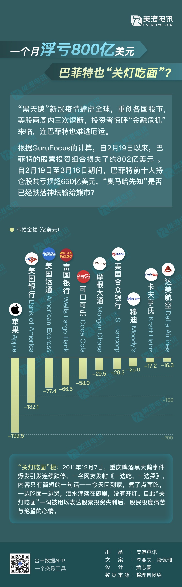 原标题:金十热图 | 一个月浮亏800亿美元 巴菲特也“关灯吃面”?
