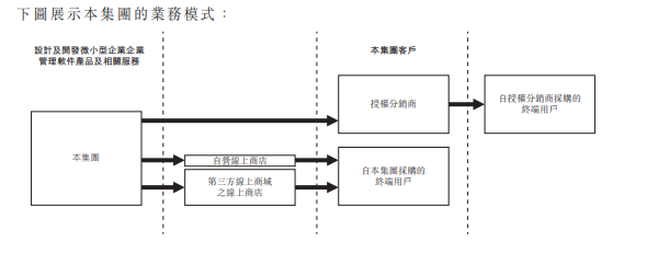 财务方面,截至2019年12月31日止三个年度,该企业分别录得收入约人民币5957万元、人民币6854万元及人民币6330万元。该企业的收入主要来自销售软件、全网通服务订购费以及提供产品支持及技术服务。于往绩记录期间,该企业通过授权分销商,自营线上商店,在第三方运营线上商城的线上商店销售微小型企业企业管理套装软件。