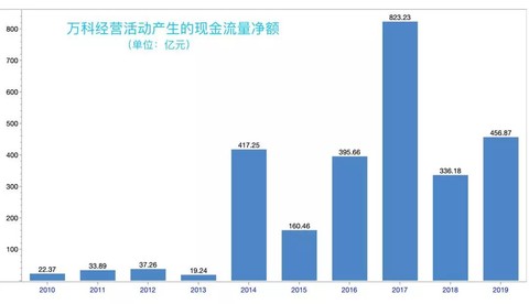 事实上,万科近年来较为注重现金流,为了“活下去”万科在现金流管理中特别注重经营性现金流流入,连续11年实现经营性现金流为正。2019年,由经营活动产生的现金流量净额为456.87亿元,相比于2018年上升35.9%。此外,公司也较为注重货币资金存量。在2018年,万科手持的货币资金在房地产行业位居第三。