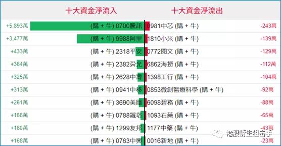 好仓(认购证及牛证)方面,有5893万、3477万港元资金分别净流入腾讯、阿里部署造多,而有少量资金净流出中芯、小米止损。
