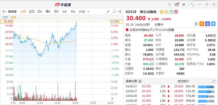 智通财经APP获悉,雅生活服务(03319)绩后获野村上调目标价15.2%至37.1港元,评级“买入”。截至14:04时44分,涨8%,报价30.4港元,成交额3.595亿。