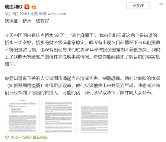 桥水达里奥:没有爆仓!市场波动那么大,亏损21%很正常。