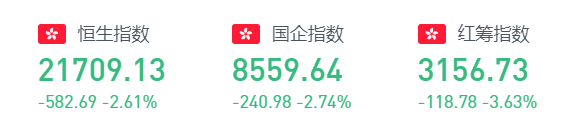 恒指19日收跌2.61%,报21709点。国指跌2.74%,报8559点。主板成交量为1910.53亿港元,港股通大幅净流入167.1亿港元。