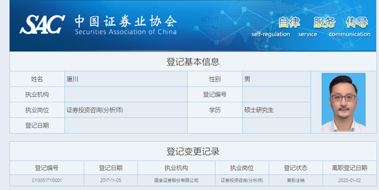 对于国金证券唱空后被打脸转而看多,新浪财经查询发现,前两次做多的分析师是唐川,17年11月5号登记在国金证券,2020年1月2号已经离职注销。
