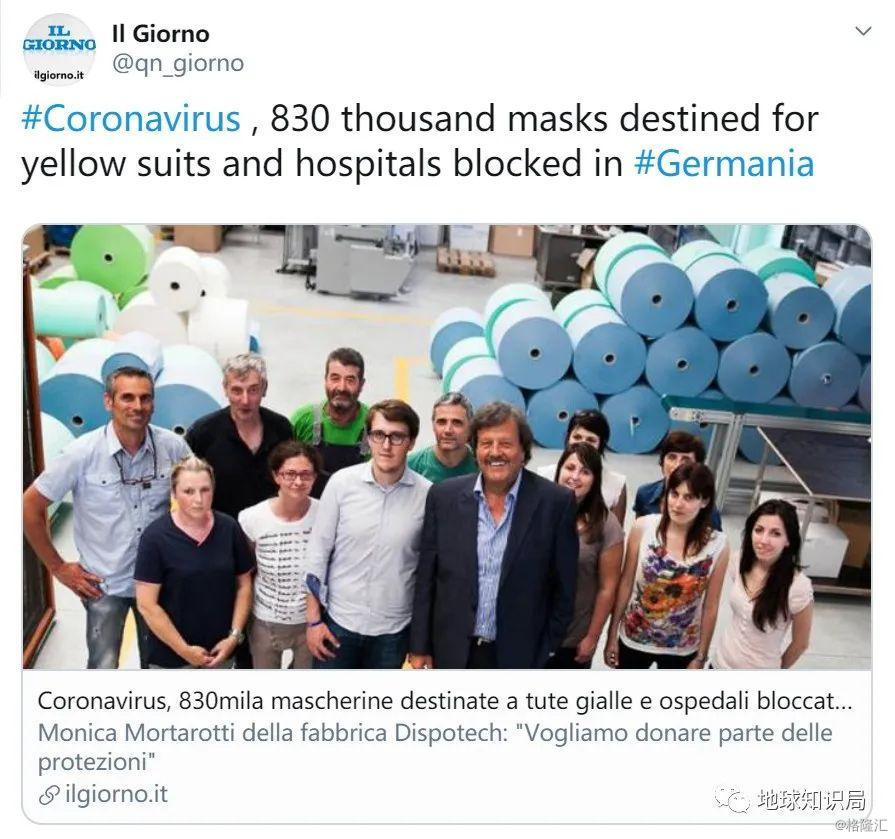 意大利人说:这批物资就在德国,但我们找不到在哪。(图片来自:Il Giorno/twitter)
