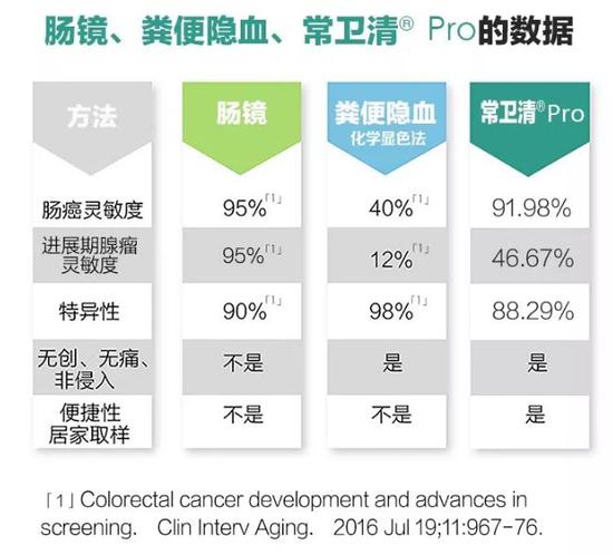 诺辉健康的主要产品“常卫清”是基于粪便FIT-DNA技术的肠癌早期筛查产品,6个靶基因、24个突变位点和3种检测手段形成一个判断指标,Cscore > =165 阳性,Cscore < 165 阴性,是一种无创、无痛、非侵入、并且居家操作的基因检测技术。它通过分析粪便FIT-DNA可以检测出直径1厘米以上进展期腺瘤和肠癌病灶,及时发现早期肠癌基因突变,并且具有较高的检测敏感性和特异性。