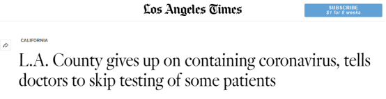 原标题:美媒:洛杉矶县放弃控制新冠病毒,要医生取消对部分患者的检测