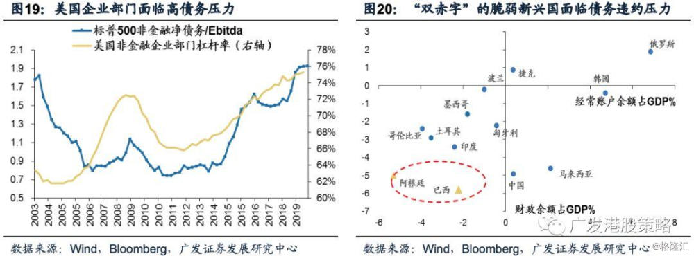 第三,海外冲击仍在左侧,但积极因素正在积累。“疫情、油价暴跌→股市流动性危机、高收益债市场压力测试、美元危机”的“负反馈”尚未结束;但积极因素也在积累,例如股市流动性危机有边际好转的迹象、美元短缺困局可能阶段性缓和。我们认为,港股受海外波动影响大跌的最惨痛阶段已经过去:一方面,极低的估值隐含了“危机模式”的悲观情景;另一方面,美元冲击可控、债务风险偏低,较欧美市场和“脆弱新兴国”,港股的独立性有望提升。