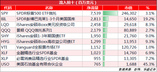 而金融行业基金XLF、石油股基金USO分别吸金10亿、8亿,或许就是资金在博反弹的表现。