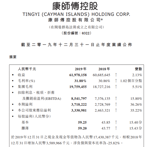 新浪港股讯 3月22日消息,康师傅控股公布2019年业绩,2019年方便面业务溢利同比上升28.74%至22亿元,预计2020年方便面业务将有好的成长。公司收入619.78亿元,公司净利上升35%至33.3亿元。