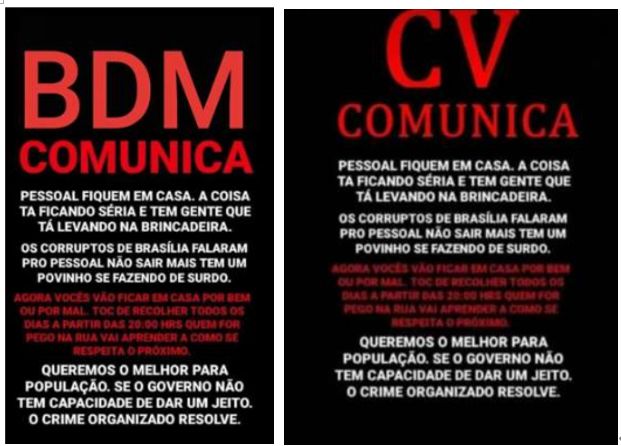 据巴西和葡萄牙媒体报道,近日,由于不满政府防疫工作的效率,巴西里约州的黑帮武装向当地各社区居民发布了“禁令”,要求居民不要随便出门。