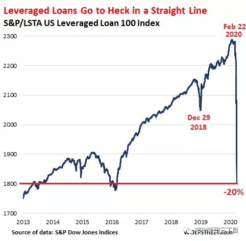 自2月22日以来,跟踪美国最大的杠杆贷款交易定价走势的标准普尔LSTA美国杠杆贷款100指数的数值飞流直下20%。
