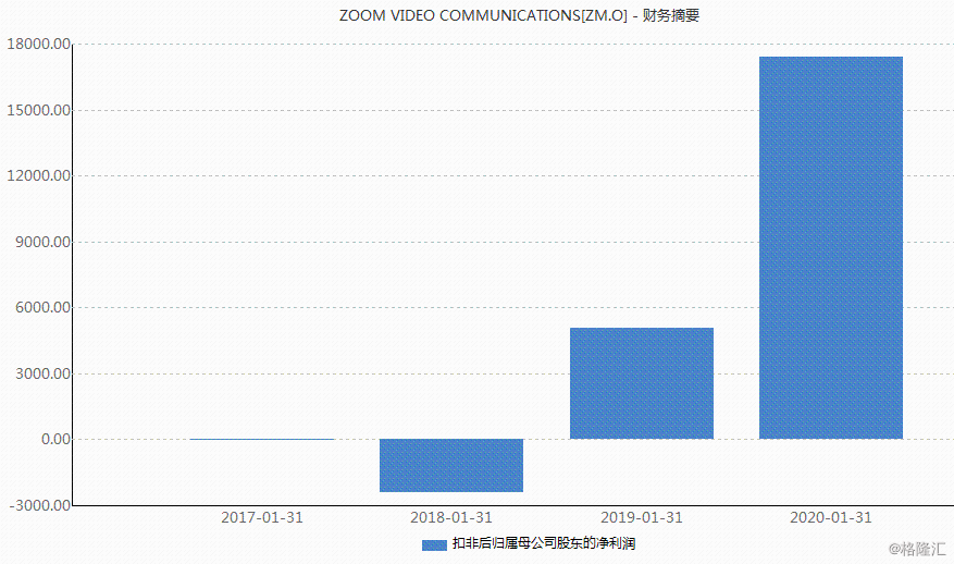 根据其2020财年第四财季财报,Zoom实现营收1.883亿美元,同比增78%,超出分析师预期(1.766亿美元);当季GAAP净利润为1530万美元,同比增长11.75倍,公司连续5个季度实现盈利;每股收益0.05美元,上年同期为0.01美元;Non-GAAP净利润为4,320万美元,同比增长3.32倍,每股收益为0.15美元,上年同期为0.04美元,超出分析师预期(7美分)。