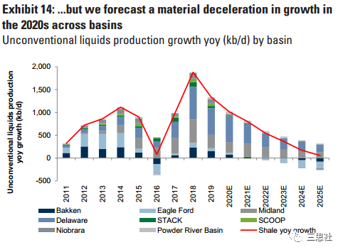 但是,随着页岩油井产量的触顶,2021年我们会看到页岩油增速的大幅下滑。