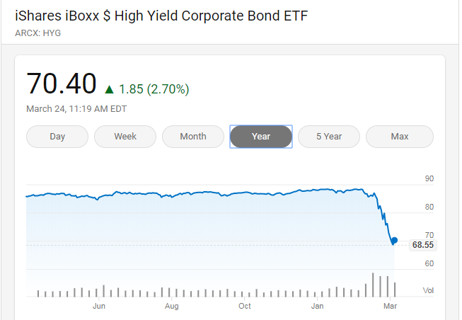流动性保障是市场稳定的第一步。24日,高风险企业债在持续下挫后出现了企稳迹象,iShares iBoxx High Yield Corporate Bond ETF从2009年低点反弹超2%。自2月20日以来,该ETF区间最大跌幅近30%,MSCI数据显示,流动性恶化令上周垃圾债平均买卖价差一度飙升至160个基点,超过了2018年底大抛售期间的水平。