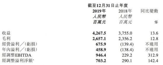 2019年猫眼娱乐收益42.68亿元,较上年同期的37.55亿元增长13.6%;毛利由2018年的23.56亿元同比增加12.8%至26.57亿元;年内盈利为4.59亿元,2018年同期为亏损1.38亿元;全年经调整EBITDA为9.464亿元,同比增长312.9%;经调整溢利净额7.032亿元,同比增长142.4%。