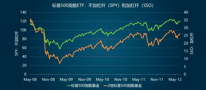 相比之下,杠杆ETF的费率要高的多,例如两倍做多标普500(SSO)的年化费率为0.9%,相当于不加杠杆的指数基金的22.5倍。