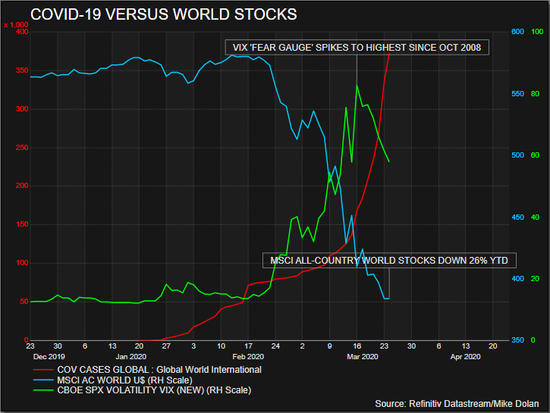 自3月初病毒在全球范围内爆发、世界各大经济体采取封锁措施以来,金融市场陷入了混乱。股票市场几乎失去了三分之一的市值,波动率飙升,信贷压力猛增等都加剧了对疫情的焦虑。