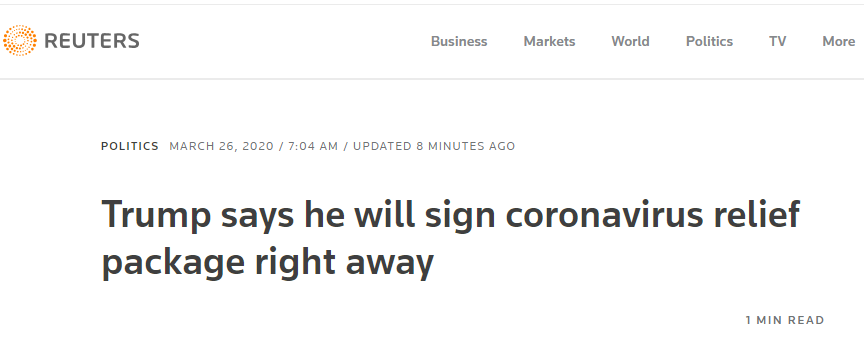 【环球网报道】“我会立即签署它的。”美国总统特朗普25日呼吁国会众议院尽快通过一项约2万亿美元经济刺激法案。美东时间当天早些时候,国会参议院与白宫就这项经济刺激计划达成了一致。