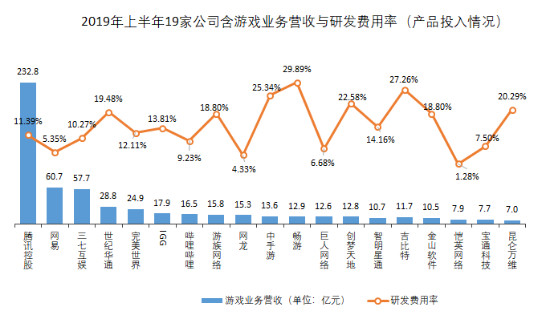 与同行相比亦可见一斑,2019年上半年中手游的研发费用率高达25.34%,处于行业领先水平,在19家行游戏业务公司中还有畅游、创梦天地、吉比特以及昆仑万维另4家公司的研发费用率均超过20%。