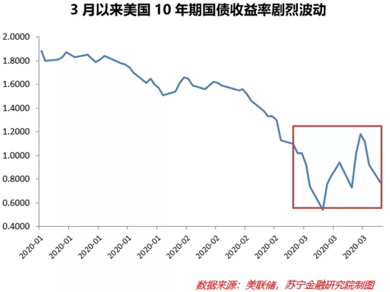 而现实情况是,自3月4日起,美国国债收益率的波动率大幅提升,忽上忽下,这是美联储非常不愿意看到的。因为大幅波动的债券市场背后是恐慌情绪下市场对于流动性的偏好大幅上升,即投资者都在抛售资产以获得现金这一安全资产,但在大幅波动下,抛售的行为只会继续增加。只有债券市场稳定住了,流动性才会回升。所以美联储大量的QE是为了将国债和两房MBS波动率打下来。