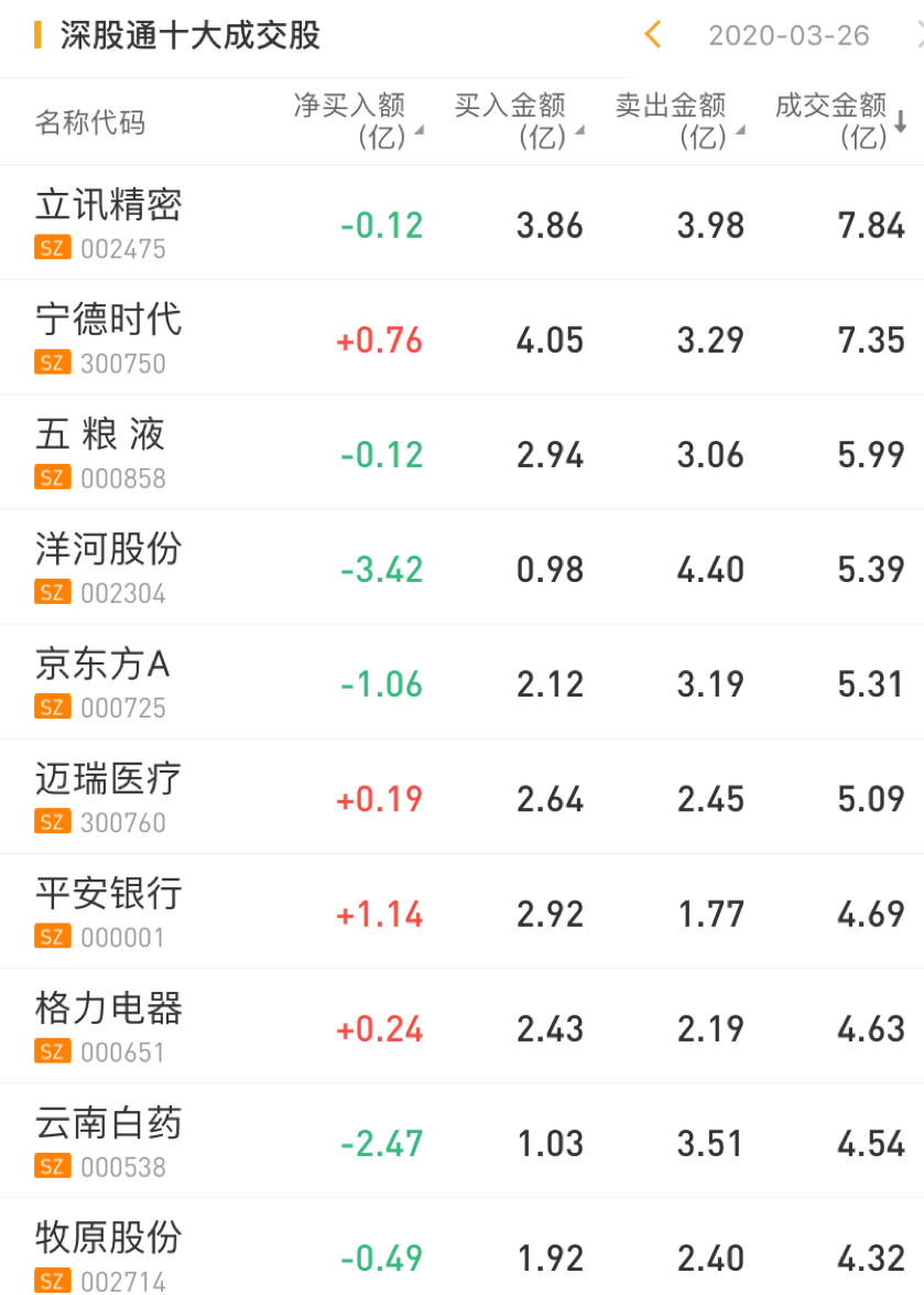 深股通净买入宁德时代0.76亿元,净买入平安银行1.14亿元,净卖出洋河股份3.42亿元。