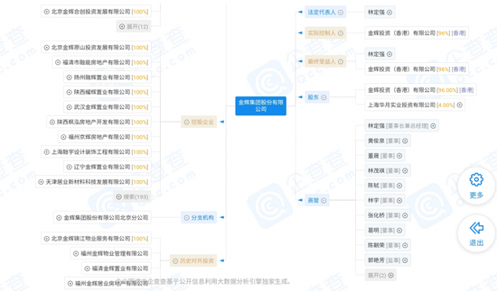 金辉集团1996年起家于福州,为闽系房企,2009年,金辉集团将总部搬至北京。金辉集团辉集团的实际控制人是林定强,其持有金辉集团96%的股份。