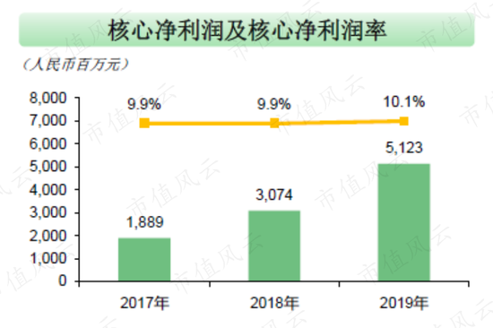 另外,2019年核心净利润为51.2亿元,同比增长66.7%,核心净利润率为10.1%。核心净利润不包括投资性物业公允值收益、汇兑损益等非经常性损益项目及其对应的税金。