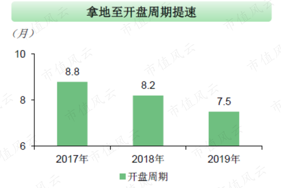 另外,值得一提的是随着公司的管理水平逐渐提升,自拿地到开盘的周期也在不断提升,从2017年的8.8个月收窄至2019年的7.5个月。